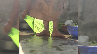 Elder step-sister's daughter bathes naked in bathtub in open bathroom of maternal uncle's house